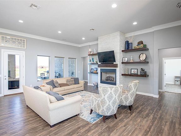 Holliday ISD custom home checks all the boxes! 20.02 Acres backed to Lake Wichita! 4 Bed + Office, 4 Bath, 3 car garage custom built in 2017. Ideal open concept. Kitchen w/granite, double ovens, double dishwashers, WOLF gas stove w/pot filler, large pantry- chef's dream. All baths w/granite or quarts & custom tile work. Luxurious master bath. Tank-less WH. Gas Generator. Alexa enabled smart home. Spray foam insulation- low utilities. Class 4 roof- reduced insurance. 30x60 insulated shop! Must see property!