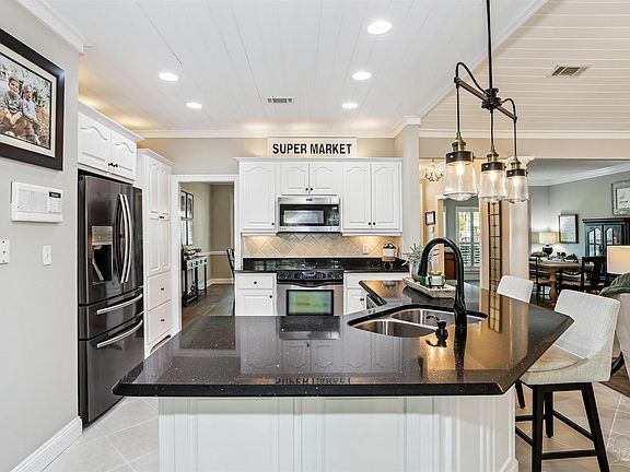 Beautifully updated and meticulously maintained lake front home in Tiger Point! The backyard is a private oasis that affords relaxing water views and privacy. Gather around the spacious patio or warm up around the fire pit on chilly evenings. When you retreat indoors, you will surely appreciate the tasteful coastal palette throughout the home. The kitchen is perfect for entertaining. In addition to the abundance of cabinetry, granite counters and stainless appliances, there is a bar with additional storage and quartz counters. The oversized master suite boasts a walk-in custom tiled shower and double vanities with granite counters. Special upgrades include an incredible laundry room with custom storage and a pavered driveway with an abundance of parking. The freshly painted garage hosts stairs that lead to 400 sq ft of coveted stand up attic storage. Along with designer lighting there are plantation shutters throughout the home. The current owners are using both front rooms as dining areas. One of the rooms could easily be modified to serve as a home office or additional bedroom. Don't miss out on this beautifully updated home located in the A-rated Gulf Breeze school district and within walking distance to Tiger Point Park facilities.