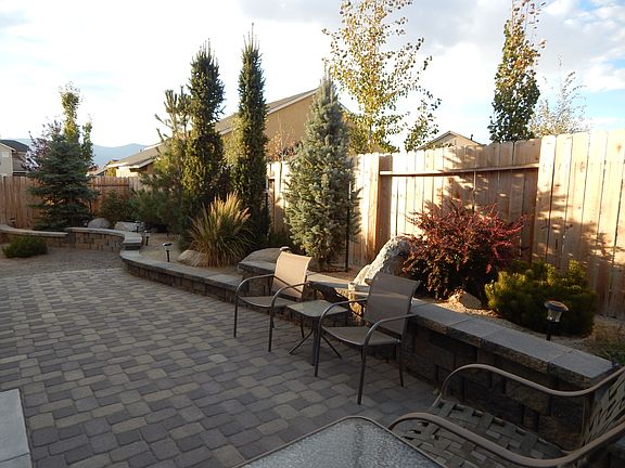 Granite counters throughout. Stainless steel appliancesGas log fireplace. 600 sq. ft. flex room w/ fantastic 180 degree view of Sierra Nevada and Pine Nut mountains only 15 miles away. Professionally landscaped with many evergreens and native shrubs. Professionally installed rock wall and garden bed/planter running across the entire back of the lot.