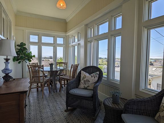 This lovely furnished home on the hillside of downtown Arcata offers comfort and convenience. The 1600' spacious 2/1 house has been lovingly remodeled with modern updates while keeping the original hardwood floors, custom tile work, and unique craftsman features. The front of the house has a light-filled sunroom offering spectacular views overlooking Arcata and the distant bay. The living room also shares this view, then flows into the formal dining room with the kitchen beyond. There you will find plenty of counter space, cupboards, commercial gas range, large refrigerator, and a separate cleanup station with another sink and dishwasher. There's also a convenient dedicated office nook off the kitchen. The south side of the house contains the two large bedrooms with plenty of closet space, and the full bathroom in between. Enjoy the covered porch that contains a barbecue, outdoor seating, propane heater, shared laundry room, and yard. Come check out this gem, that's in close proximity to downtown, Cal Poly, the Arcata Community Forest & Marsh, with quick access to HWY 101. No animals please, due to being furnished.