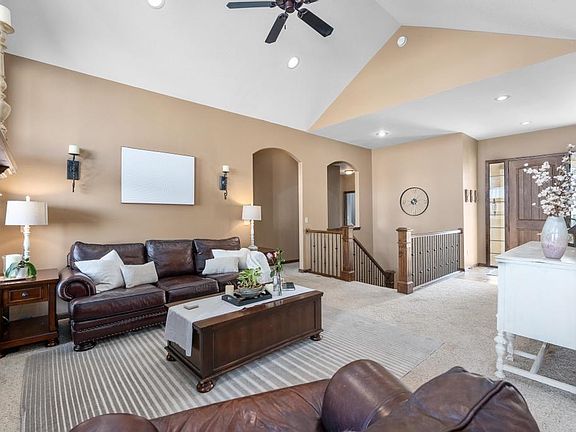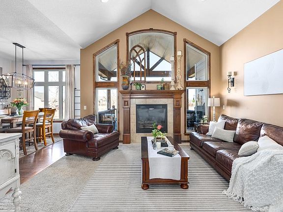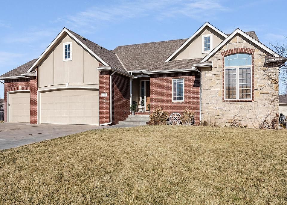 Welcome to this gorgeous 5-bed, 3-bath home sits on a large corner lot within the highly sought-after Maize district. The living room features an open floor plan with vaulted ceilings, a gas fireplace, and an abundance of natural light with floor-to-ceiling windows. Next is the kitchen/dining room combination with access to the back deck. This kitchen is every chef's dream with hardwood floors, granite countertops, Knotty Alder cabinets, an island with eating space, a walk-in pantry, and all kitchen appliances stay. Just off the kitchen is the main floor laundry room with a built-in desk. The Master bedroom has coffered ceilings and the en-suite has double vanities, a separate tub/shower, and a walk-in closet. The main floor also features 2 additional bedrooms and a hall bathroom. The view-out basement begins with a large family/rec room that is perfect for entertaining! The family room has a gas fireplace with a built-in bookcase/storage surround. Don't miss the custom-built dry bar with seating space for 6 guests, and a separate room with a full-size refrigerator and wet bar. 2 additional bedrooms, a 3rd bathroom, and a storage space/room complete this level. The backyard features include a beautiful covered composite deck, an irrigation well for the sprinklers, and a small portion of the yard is fenced with wrought iron fencing to keep the kids or animals safe. The roof has class IV impact resistant shingles. Located just minutes from New Market Square and there are no special taxes after 2023! We don't expect this one to last long. Schedule your private showing today!