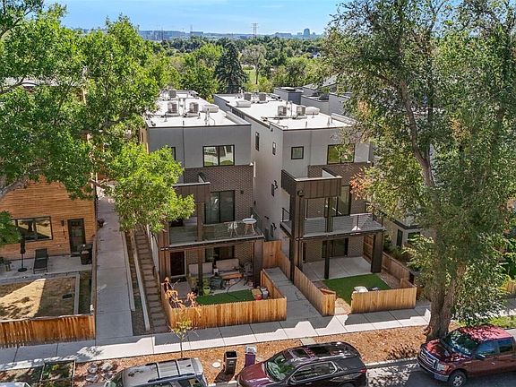 Built in 2021, this brand-new triplex boasts three expansive, town-home–style units featuring 4 bedrooms and 3.5 baths each, spread over three levels plus a finished basement—ideal as a family room, media space, gym, or den. All units showcase high-end finishing touches: quartz countertops, tall ceilings, large windows that flood interiors with light, and premium interior/exterior materials . Each home includes a private, landscaped yard with a patio, a second-floor balcony with mountain or city views, and a detached one-car garage (with EV-ready 220 V outlets) . Amenities include central air, in-unit laundry, stainless steel appliances, and wet-bar/wine-fridge setups in some units.
