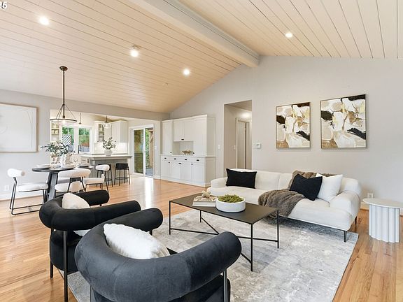 Discover the perfect blend of mid-century character and modern comfort in this beautifully maintained Cedar Hills single level home. Light-filled open floor plan with vaulted ceilings, hardwood floors, built-ins, and a cozy fireplace. The remodeled kitchen shines with custom cabinetry, a gas range, and striking quartzite countertops. Enjoy year-round comfort with a new furnace and A/C. A home office or studio built out behind the garage offers flexible space, and the fenced backyard with deck and fire pit is perfect for entertaining. Prime location near Cedar Hills Crossing and easy freeway access.