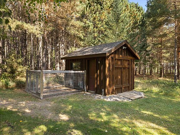 Enjoy the outdoors from your low-maintenance composite deck overlooking the peaceful, tree-lined backyard—an ideal setting for relaxation. In addition to the attached heated garage, this home includes a 20x28 heated garage/shop, a 14x11 dog kennel/run, and a 10x12 storage shed. This property offers a combination of privacy, space, and quality craftsmanship.
