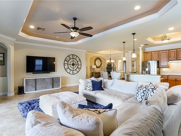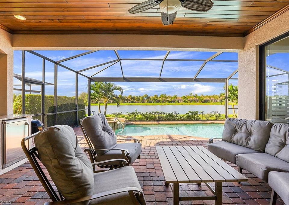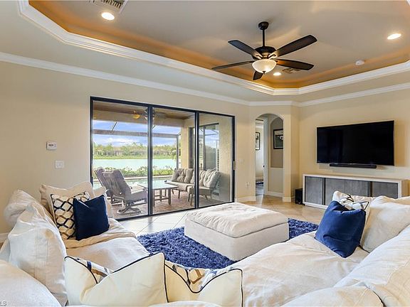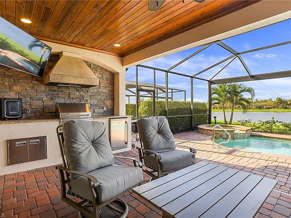 Available April and May 2021. Full golf membership transfer available with this rental. This professionally decorated three bed, two bath plus den open concept home is situated amongst the tranquil beauty of Twin Eagles' 1,115 acres. TwinEagles is home to two championship golf courses, miles of walking and biking trails, Har-tru tennis, a full-service spa, and a 47,000 square foot clubhouse, state of the art fitness, and formal and outdoor dining. This neat as a pin home features tile throughout. The owner's suite includes a king bed, large screen TV, a separate tub, and a walk-in shower. The guest bedrooms have queen beds and a separate bath with a walk-in shower. A sleeper sofa is available for guests in the den. The living space features an oversized L-shape sofa for ultimate comfort. The kitchen is fully equipped with stainless steel appliances, granite countertops, and bar chairs, and an adjacent dining room with a large table and four chairs. The lanai has an outdoor kitchen with a built-in gas grill, a charcoal grill, a fridge, lighting, and a lounge table with overstuffed chairs, a saltwater heated pool, spa, and waterfall.