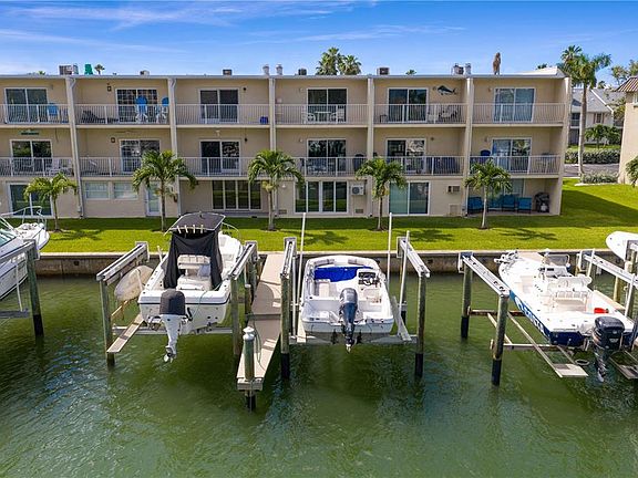 EVERY DAY will feel like a vacation in this BEAUTIFUL waterfront townhome with DEEP WATER PRIVATE DOCK, LIFT, and INSTANT ACCESS to the Gulf. Your sunset and dolphin cruises, fishing, and Eleanor Island SANDBAR ESCAPES start in your backyard - no public launches! Welcome home to manicured lawns and BEAUTIFUL ENTRIES. You will love the stylish OPEN LIVING SPACE on the main floor that boasts rich engineered WOOD FLOORS, a timeless kitchen and island with EXTRA DEEP CABINETS, pull-outs, custom glass, BUILT IN DESK, stainless appliances and thoughtful LIGHTING OPTIONS. Main Floor Designer touches include a convenient POWDER BATH, chandelier cove in the Dining Area, a stone surround FIREPLACE in the Living Area and IMPACT SLIDERS opening to a WATER VIEW BALCONY. The next level holds the PRIMARY BEDROOM with an updated EN SUITE BATH, large closet and PRIVATE BALCONY facing the water. An inviting guest room features an ample closet and a guest bath with an extra wide soaking tub. Between the two bedrooms is FLEX SPACE with laundry, closet, and room for a home office or hobby area. The ground level offers an OVERSIZED one car garage and a Bonus Room with DIRECT ACCESS TO YOUR BOAT. The garage did have water intrusion during Helene but has been PROFESSIONALLY remediated, water-proofed, and UPGRADED with epoxy floors, flow-through vents, and mini-split AC. UNEXPECTED EXTRAS are FEMA PAID Flood Insurance (3 years); PET FRIENDLY COMMUNITY; Annual rentals permitted; Close to Capri Isle Park, Restaurants, Shops and TREASURE ISLAND BEACHES. So many beautiful features you will want to MAKE THIS YOUR HOME TODAY!