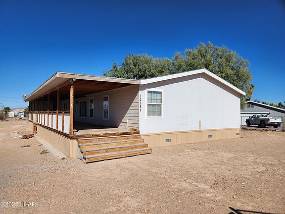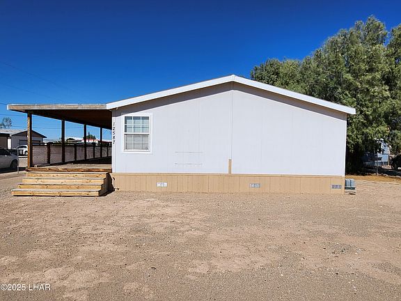 Adventure Awaits! Your Spacious Family Home Near the Colorado River. Calling all outdoor enthusiasts and families seeking room to roam! This fantastic 1800 sq ft, 3-bedroom, 2-bathroom home is perfectly situated for endless fun. Imagine stepping out your door and being just a minute away from vast Federal lands for off-road exploring. For water lovers, the Topock launch ramp is a mere couple of miles down the road, offering prime access for fishing and boating on the Colorado River. This upgraded Fleetwood Entertainer model, built with durable 2x6 construction, truly lives up to its name. Enjoy incredible outdoor living on the full-length covered deck, perfect for entertaining friends and family. Inside, you'll find a spacious open floor plan featuring a huge living room, a versatile den, and a convenient built-in office area. The well-appointed kitchen boasts a breakfast bar and comes complete with the fridge and microwave. Retreat to the master suite with a luxurious jetted tub and separate shower, while the two additional generously sized bedrooms offer walk-in closets. Sitting on a 0.28-acre lot with a substantial 576 sq ft garage (featuring an opener, laundry sink, and dishwasher), there's plenty of space for all your toys and hobbies. Recent upgrades include new skirting and chain link fencing. Experience the best of small-town living with shopping and amenities just a short drive away in Bullhead City (30 minutes) or Lake Havasu City (45 minutes). This is more than a home; it's a gateway to an adventurous Arizona lifestyle!