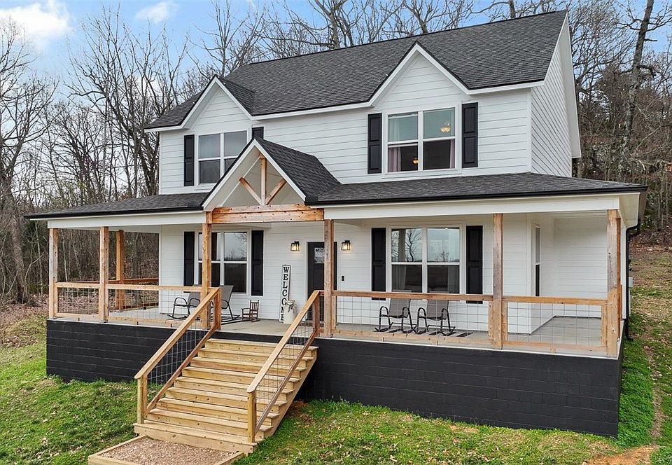 This two year old home has a custom floor plan that doesn't waste any space and still has 4 spacious bedrooms- 3 upstairs and the primary downstairs. Open concept living, kitchen and dining area with a built in wine bar buffet area in the dining area. Butcher block island and buffet tops and the stair steps going up stairs are custom from a tree on the property. A brand new 40x30 shop with electric and two over head doors. This 10 acres and home is the legacy property you have been waiting for!