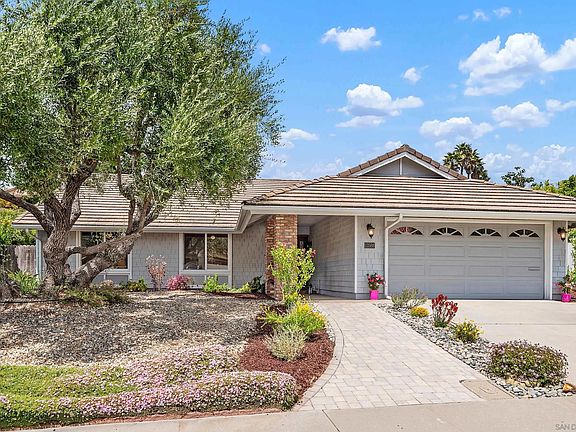 The instant you arrive, this welcoming home captures your heart with its vibrant landscaping, colorful blooms, and cozy bench swing. Located in a quiet cul-de-sac on an expansive .33-acre lot, this beautifully maintained, single level residence offers an open floor plan that blends comfort with functionality. Large windows bathe the interior in natural light, enhancing the home’s airy and inviting ambiance. Step into an interior featuring freshly painted walls, updated bathrooms, new outlets, and an open-concept kitchen that seamlessly connects to the living and dining areas—perfect for daily living and entertaining. The flexible layout is ideal for a variety of lifestyles, offering space to relax, work, or host. The tranquil backyard retreat is designed for year-round enjoyment, with low-maintenance synthetic turf, stylish pavers, fruit trees, and mature landscaping. The yard is fully fenced, providing privacy and safety, while a potential view deck could unlock sweeping vistas from the upper portion of the property. Located in the sought-after Rancho Bernardo master-planned community, this home is within the award-winning Poway Unified School District and offers convenient access to shopping, golf courses, freeways, and scenic hiking trails. There are no Mello-Roos fees and a low annual membership to the nearby RB Swim & Tennis Club grants access to tennis and pickleball courts, a fitness center, pools, spa, and a variety of activities. Come experience the charm, space, and lifestyle that make this Gatewood Hills gem the perfect place to call home.