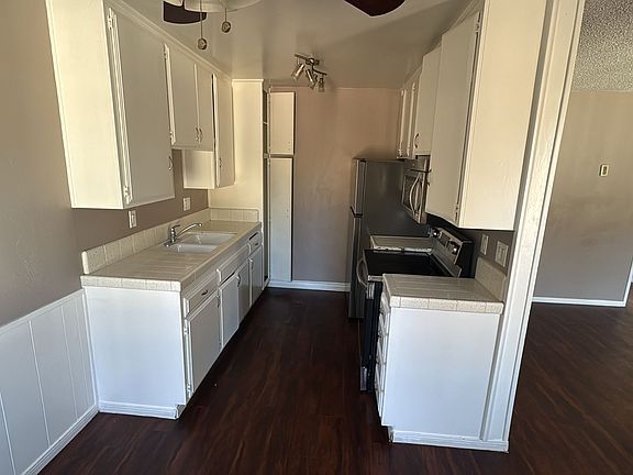 Cozy atmosphereGenerous closet spaceCeiling fanPlenty of natural lightAmple cabinet spaceTiled countertopsBright and spacious layout