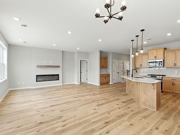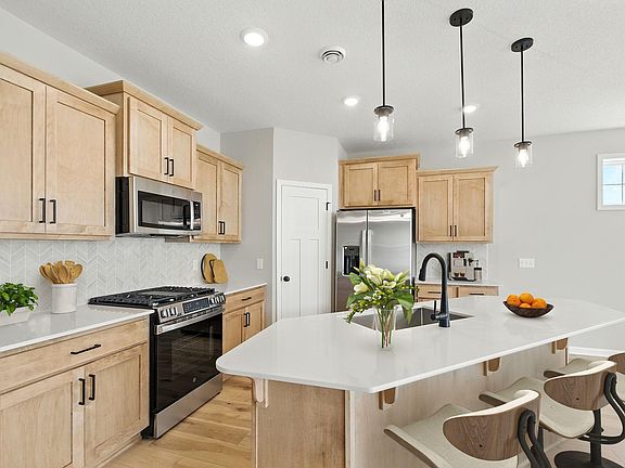 Welcome to Beaumont Bluffs, a charming community nestled just beyond the heart of downtown Jordan. Prime location within walking distance to Jordan Public Schools, the Rec Center, and beautiful parks, Beaumont Bluffs offers the perfect blend of convenience and tranquility. The Elmwood IV, a stunning modern cottage-style home designed for effortless one-level living with a bonus upper level for added space and flexibility. The main floor showcases an open-concept layout where the kitchen, dining area, morning room, and family room flow seamlessly together making it ideal for entertaining or relaxing. The kitchen is a true centerpiece, equipped with sleek modern appliances, generous counter space, and abundant storage to meet all your culinary needs. Whether you are a seasoned chef or simply enjoy cooking at home, this space is sure to inspire. Adjacent to the kitchen, the cozy dining area invites you to gather for meals and conversation while the coveted morning room offers a serene spot to sip coffee and ease into your day. Owner’s suite, conveniently located next to the family room, features a spacious en-suite with a double sink vanity, shower, linen closet, and a separate walk-in closet with ample room for all your essentials. Upper level offers a versatile loft space, perfect for a playroom, media area, or teen hangout. Two generously sized bedrooms and a full bathroom flank the loft, while an extra storage closet provides plenty of room for holiday décor and more. Beaumont Bluffs is more than a neighborhood, it is a thoughtfully designed community that captures the spirit of Jordan while offering modern comfort and timeless charm.