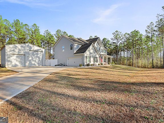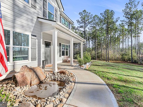 Step inside the welcoming foyer, where beautiful hard surface flooring and refined trim immediately set the tone for the thoughtful craftsmanship found throughout the home. Just off the entry, two versatile rooms offer endless possibilities and are ideal for a home office, formal dining room, or play space tailored to your lifestyle. At the heart of the main level, the spacious family room centers around an elegant fireplace, creating a warm and inviting gathering place. From here, the home flows seamlessly into the kitchen, thoughtfully designed with solid surface countertops, a stylish tile backsplash, stainless steel appliances, and abundant storage including a generous pantry. A guest bedroom is conveniently located on the main level, with a full bathroom just outside the room, offering comfort and accessibility for visitors. Upstairs, the oversized primary suite serves as a peaceful retreat and features a beautifully tiled bath and a striking walk in shower. Two additional bedrooms share a well appointed full bath, while a spacious secondary living area provides exceptional flexibility for a media room, homework zone, or creative space. Hard surface flooring enhances much of the main level, and carefully selected details throughout the home add both charm and everyday functionality. Outdoor living truly shines here. A covered rear patio opens to a private backyard oasis highlighted by an inground sports pool with a premium PebbleTec finish, surrounded by CoolCrete surfaces designed for durability and barefoot comfort and ideal for hot Georgia summers. Whether relaxing poolside or hosting gatherings, this outdoor space is designed for enjoyment. Beyond the pool, a generous thirty by thirty foot shop with power offers endless possibilities for woodworking, storage, or hobbies. The exterior of the home features durable fiber cement siding, architectural shingles, and Low E windows, all contributing to excellent energy efficiency and long term value. Blending comfort, craftsmanship, and exceptional outdoor amenities, this property offers a lifestyle you will enjoy for years to come.