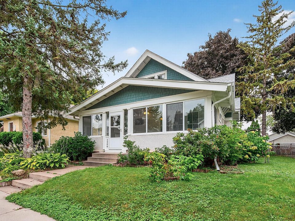Welcome to this beautiful Craftsman Bungalow, where timeless architecture meets thoughtful updates. Step inside & be greeted by 9-foot ceilings & the original woodwork, hardwood floors & built-in buffet. The light-filled kitchen features soft-close drawers, Bosch dishwasher, gas range with dual ovens, & newer stainless refrigerator. A smart thermostat & central AC bring energy efficiency & comfort to the home. Relax on the spacious front porch, or retreat to the lower-level bedroom with a walk-in, cedar-lined closet. For the ultimate in-home spa experience, enjoy your own backyard sauna! Upstairs offers a spacious bedroom & the opportunity to add an ensuite bathroom. Landscaping features Minnesota native plants. Walk to Trader Joe's, restaurants & parks. Don’t miss the chance to own this rare blend of historic charm and modern living!
