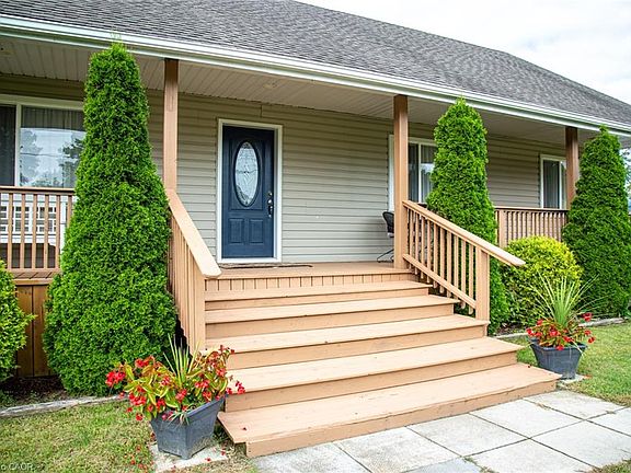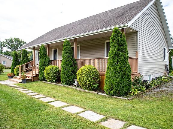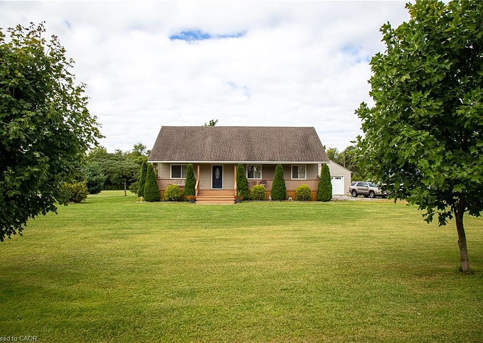 Are you looking for your sign to move to the country? STOP, here it is! 1259 Turkey point Rd. is a fantastic choice for families looking to have a spacious home on an acre lot without a long bus ride to school. There is not one, but two, elementary schools within walking distance - Walsh Public School (which has English and French Immersion streams), and St. Michael's Catholic. You can almost watch them go door to door from the gorgeous front porch, even in the rain, because it's covered space is more than enough for a comfy seating area. Making your way inside you'll step into an open concept main floor featuring a large Living Room, Dining area, and Kitchen with vaulted ceilings and lots of counter space. From inside you can enjoy the view of the large backyard through the patio doors, or head outside and sit under the large covered area on the composite deck. The main floor offers 3 Bedrooms, a full 4 Pc Bathroom and a handy Pantry/Closet by the back entrance near the basement stairs. On the lower level is a comfy Rec Room, 2 more Bedrooms, a 3 Pc Bathroom, Laundry/Storage area, and tidy Utility Room. This rural property was built in 2008 and has the best of both worlds: a drilled well, septic system (cleaned out in ’24), and in town conveniences like Execulink fibre internet and natural gas. Not to leave out the amazing Workshop/Oversized double Garage that measures 22’ x 30’ and has a concrete floor, electrical, high ceilings and a wide door with an automatic opener. Parking for 10 + cars, an RV, trailer, or camper, this location is ideal for not only locally working families, but anyone who is commuting at under 45 minutes to Brantford, Tillsonburg, Hagersville and 25 minutes to Nanticoke. Come feel the difference country living can make!