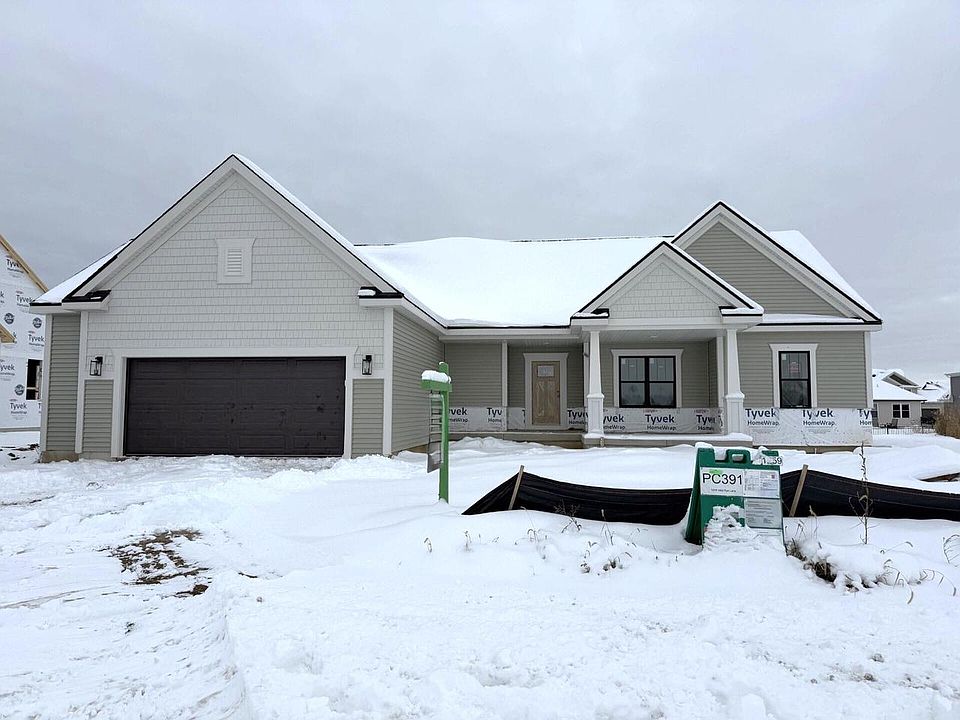 Spacious split ranch in Prairie Creek Ridge! The Kendall features upgraded features throughout. Front foyer leads to open concept living space, with flex room on the right. Kitchen features soft close cabinets, quartz countertops, tile backsplash, walk-in pantry & exterior vented range hood. Off kitchen is the great room boasting a cathedral ceiling & complete with an electric fireplace with stone detail. Dinette lets in plenty of natural light. Primary suite features 2 WICs, tiled shower, and two sinks. 2 secondary bedrooms + hall bathroom are located on opposite side of the home. Rear foyer includes a roomy WIC for extra storage. LL includes egress window, full bath rough-in & space for future finishing. Home is currently under construction, estimated completion late Feb/March 2026.