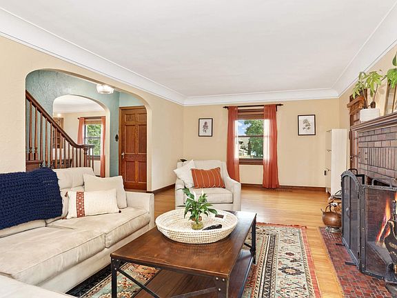 **Multiple Offers received** Highest and Best Due Tuesday 7/18 by 6PM. Seller will review offers Tuesday evening. Prepare to be enchanted by the charm and character that radiate from every corner of this colonial-style architecture residence. This 2-story brick home is perfectly positioned on a double corner lot overlooking South Lindstrom Lake and 1 block from Beachfront park. The original built-in features add to the allure, while the hardwood floors, coved ceilings, and other unique architectural elements showcase the home's timeless appeal. This home has been thoughtfully maintained and improved throughout the years. Updates include new Anderson windows, updated lighting and plumbing fixtures, new retaining wall and landscaping.Don't miss your chance to own this exceptional home. Embrace the opportunity to become a part of its rich history and make it your own.
