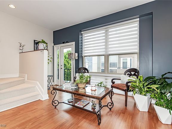 Beautifully updated 2-bed, 2.5-bath townhouse located in the heart of the vibrant Larchmere Art District, minutes from University Circle, Cleveland’s cultural hub. Enjoy an unbeatable location steps from Shaker Square, rapid transit access to downtown or the airport, and top institutions like Cleveland Clinic, University Hospitals, and Case Western Reserve University. This rare gem with original long term owner features a private courtyard and rooftop Trex deck with sweeping views of downtown—perfect for peaceful mornings/evening gatherings. Inside, you'll find nearly every detail thoughtfully updated. Entry level offers an attached 1-car garage with walk-in storage closet and bonus room with LVT flooring, heating/cooling, and natural light—ideal as a 3rd bedroom, office, or fitness space. Up the newly stained wood staircase, the second floor features a light-filled open layout with high ceilings, updated fixtures, and beautiful hardwood floors. The spacious great room boasts a gas fireplace, floor to ceiling windows, balcony access, and seamless flow into the updated kitchen with granite counters, solid wood cabinetry, peninsula seating, gas cooktop, and all appliances stay — including new '23 refrigerator. A stylish updated half bath and ample storage round out this level. Upstairs, brand new carpet leads to two generously sized bedrooms, each with floor to ceiling windows and their own full bathroom. Primary suite offers a walk-in closet, and stunning bathroom with a '24 marble shower floor, marble vanity, tile surround, and linen closet. Convenient hall laundry closet with stackable washer/dryer. Don’t miss the private rooftop deck, recently stained/sealed, a quiet escape with stunning skyline views. Additional Updates: Low emissivity windows to keep out the heat, Brand new AC June '25 & furnace (end of '24), Hot water tank & Interior paint ('18). Rare opportunity to own a move-in-ready townhome in one of Cleveland’s most artistic and accessible neighborhoods.
