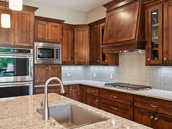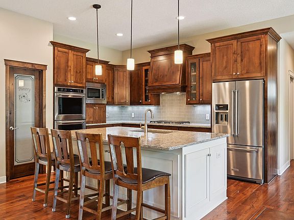 Well maintained executive walkout rambler in Maple Grove, nestled on a spacious .7-acre lot. Better than new construction! This exquisite home is loaded with upgrades! Featuring 3 bedrooms on one level, including a main floor primary bedroom with private ensuite and a tiled walk-in shower. 10’ ceilings, walnut hardwood floors, and new carpet throughout create a warm & inviting atmosphere. The gourmet kitchen is a chef’s dream; gorgeous custom cabinetry, large center island, SS appliances - double oven, cooktop range, & walk-in pantry. Granite or quartz countertops featured throughout the home. Zoned heating for upper and lower levels ensures comfort. Enjoy private pond views from the maintenance-free deck & large patio. Oversized insulated 3-car garage includes epoxy floors & floor drains. This rare opportunity is a MUST SEE!