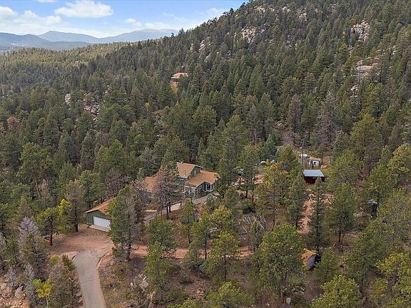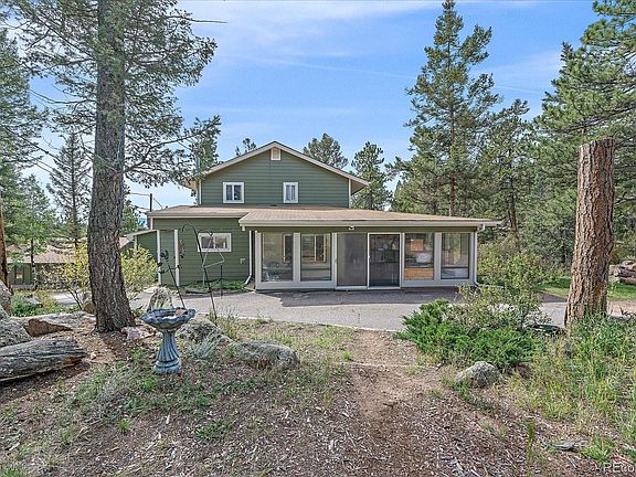 Priced for you to add value and comforts. Nestled in the serene landscapes of Conifer, this charming home offers a perfect blend of comfort and tranquility. Spanning 1,788 square feet, the residence features two bedrooms (plus a bonus room) on the upper level and two bathrooms, providing ample space for relaxation and entertainment. As you enter through the sunroom and into a flex entry space for a mudroom/dining room/office/etc., you'll be greeted by a warm and inviting living area. The open-concept design seamlessly connects the living space to a well-appointed kitchen, ideal for culinary adventures and gatherings with loved ones. Head down to the large family room with views and a wood burning stove, perfect for cozy evenings. This property is not only about the indoors but also offers practical and charming outdoor features. The newer oversized two-car garage provides ample storage for vehicles and gear. The home boasts durable newly painted cement siding, and includes modern upgrades like a newer electric panel, boiler, and water heater, all efficiently powered by a convenient natural gas connection. The expansive lot with a circular driveway encompassing over 3.77 acres, A-2 zoning, and domestic well, includes outbuildings such as a goat house, chicken coop, and storage shed, making it perfect for hobby farming or additional storage needs. With plenty of space to put your own special touches on, you can truly make this property your own. Experience the best of mountain living while still being conveniently close to local amenities and the charming areas of Conifer and Pine Junction. Don't miss the chance to make this delightful property your own.