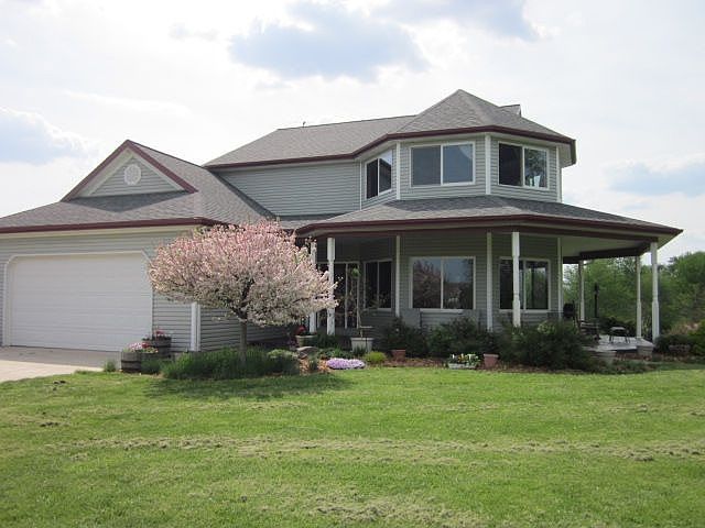 Custom built home with many additional custom features, located on 14 acres with stocked pond, meandering creek, wooded areas, open fields & natural Illinois prairie. Large master bedroom with plenty of natural light, & large walk-in closet. 4 full baths in the home. Quartz counters in kitchen w/ plenty of cabinet space. Lower level walk out, family room with wet bar & rec room . Wrap around covered porch with stamped concrete. Beautiful views.Geothermal system and 2-50 gal water heaters.Large out building