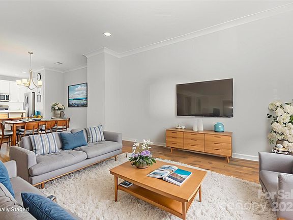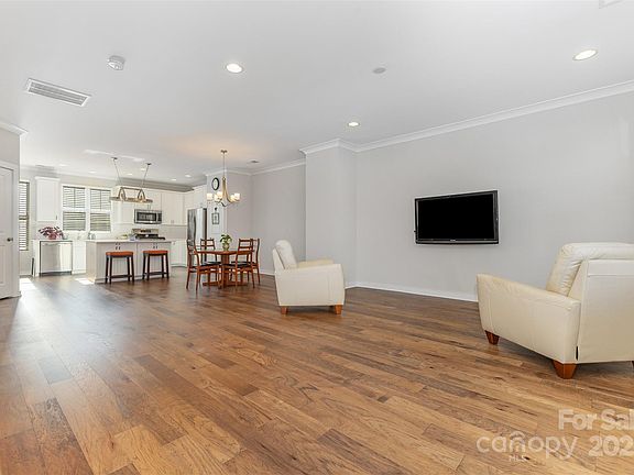Welcome to The Villas at Morrison Plantation which is conveniently located to tons of shopping and dining! This beautiful 3-bedroom, 2.5-bath townhome offers an inviting open floor plan filled with natural light. Showcasing luxury finishes throughout, including 9-foot ceilings, hickory floors (no carpet in entire home) and cove molding! The chef-inspired kitchen features a large island, quartz countertops, stainless steel appliances, double oven, refrigerator, spacious pantry, 42 inch cabinets, pull out shelves in cabinets and a corner lazy susan turntable including a breakfast cove that could also be a space to add additional cabinets or that perfect coffee bar you have been dreaming of. Enjoy a bright and airy living area that seamlessly flows into the dining space. Upper level features the primary bedroom with large walk-in closet with custom shelving, ensuite bath with large walk-in shower and dual sinks! Two additional roomy bedrooms with nice sized closets share a full bath. Lower level features 2 car garage (shelves convey) and a flex room with closet that can be used as an office/workout room/work shop-use your imagination. Ideally located to so much, this home combines comfort, convenience, and modern style in one of Mooresville’s most sought-after communities.