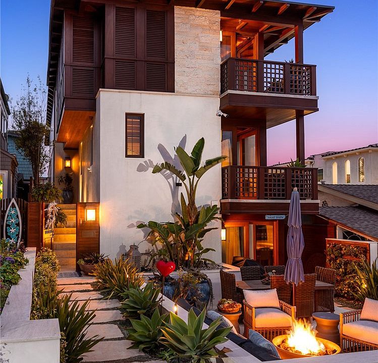 Welcome to 126 4th Street, a stunning coastal retreat in the heart of Manhattan Beach. Crafted by KAA award-winning architects and interiors by Waterleaf, this beautifully designed multi-level home combines modern elegance with beachside charm, offering breathtaking ocean views and luxurious amenities. This expansive 6,000 sq ft property features 4 bedrooms, 6 bathrooms, and a modern tropical design that evokes the feeling of a perpetual vacation. The welcoming front entrance leads to an outdoor patio perfect for entertaining, featuring comfortable seating around a cozy fire pit. The spacious living room boasts large windows with ocean views, a charming fireplace, and elegant furnishings. The gourmet kitchen includes high-end appliances, a gas cooktop island, and custom cabinetry, seamlessly connecting to a comfortable family room and dining area, perfect for family meals and entertaining guests. Multiple balconies provide stunning views of the ocean and the surrounding neighborhood, creating ideal spots for relaxation. The primary suite offers a private sanctuary with dual vanities, and a walk-in shower. Additional well-appointed bedrooms are spacious and tastefully decorated, offering plenty of natural light and comfortable living spaces. The oversized media room is perfect for watching movies, playing games, and is great for kids, teens, and sleepovers. The home gym is equipped with a Peloton and Infra Red Sauna, and additional features include a dedicated office space, a spacious laundry room, and an outdoor shower area perfect for rinsing off after a day at the beach. The 2-car garage provides extra space for bikes, paddle boards, surfboards, beach chairs, and more, along with an electric car charging station. Enjoy the beach bar with a kegerator and a small kitchen, ideal for watching sports and hosting gatherings. With air conditioning and a cleaning crew twice per week, this home ensures a lifestyle of luxury and convenience. Located just steps from the beach, 126 4th Street offers easy access to the best that Manhattan Beach has to offer, including fine dining, shopping, and recreational activities. Experience the best of coastal living in this beautifully appointed home available for lease, where modern amenities blend perfectly with the charm of beachside living.