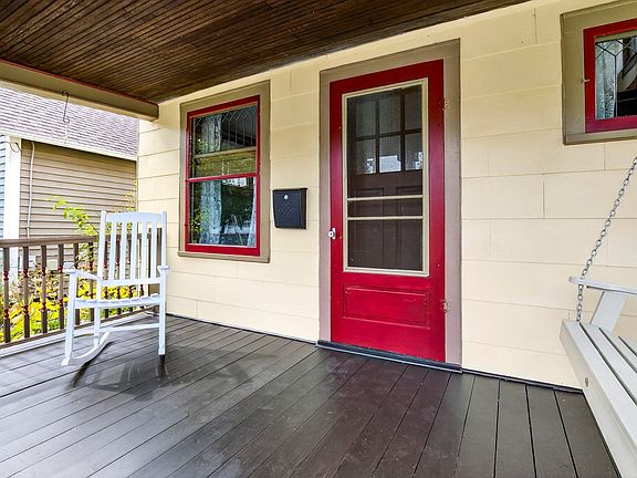 Charming 1.5-Story on Doty Island! Fall in love with this inviting home just steps from Doty Park, Whiting Boat House, and downtown Neenah. A spacious front porch sets the tone, welcoming you into a warm and comfortable layout. The main floor offers a bright family room, dining room, kitchen, and full bath. Upstairs you’ll find two bedrooms plus a walk-in closet for added storage. Step outside to enjoy a large private deck with trellis overlooking the fenced backyard—perfect for entertaining or relaxing. The detached garage features an epoxy floor, keeping the space clean and functional. Peace of mind comes with many updates, including roof shingles, sewer lateral, water main, furnace, A/C, and more. Siding is slate. Don't miss your chance with this one!