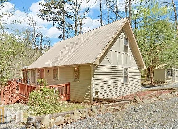 Fish from the Couch" Close to the Rushing Waters of the Coosawattee River this Cottage Style 2BR/2Bath Cabin with Open Floor Plan, Cathedral Ceilings, Kitchen with Pass Thru Sandwich Counter. Nice Dining Area with Bay Window, Great Room with Rock F/P (wood burning). 2 Sets of Double Glass Doors to Let the River Music in. Spacious Bedrooms with Full Bath & Laundry on Main. Second Bedroom with Full Bath upstairs. Youll Live on the Full Width Screened Porch with the river seemingly at your feet. 3 Bay Carport, Cute Storage/Potting Shed Complete the property. Ask about Home-Improvement Financing Available for any Renovations Needed. Incredible Rental Potential. 3 Pools, Parks, Tennis, Fitness and much more in Gated Community.