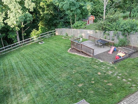 This move-in ready, brick, center-hall colonial sits on a 1/4 acre lot w/level entry into the house & the attached garage. Restored sandstone trim accents the recently repointed brickwork. Polished hardwood flooring highlights the 1st & 2nd floors. Crown molding & classical fireplace details embellish the living room, & matching molding complements the dining room. An updated main bathroom, newer LL bath & newer maple kitchen offer today's conveniences & finishes for your comfort. The renovated game room sports an industrial style w/a dry bar anchoring one end of the room. The fenced-in yard is lined with trees at the back & abuts the 17-Acre nature center. A brick patio & a 2-tier, floating deck add to your entertaining options and enjoyment of the outdoors. The "shed" annex offers easily accessible storage for outdoor equipment & furniture while adding privacy to the patio. Top off special nights w/a nightcap & special views from your own rooftop deck, accessed from the master.