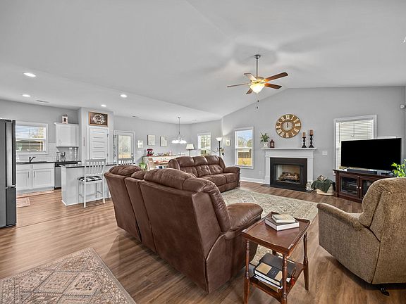 Welcome to Archer's Crossing. This peaceful, thoughtfully planned community provides easy access to major highways, making commutes to Wendell, Raleigh, Wilson, and nearby amenities simple. Situated on a spacious .58 acre homesite. This ranch-style 3 bedroom, 2 bath home offers 1,587 square feet and a 2-car garage. Upon entering you'll notice the vaulted ceilings in the family room and luxury vinyl plank flooring throughout the main living areas and the owner's bedroom. Snuggle up by the 36'' gas fireplace in the comfortable family room that overlooks the kitchen and dining area. The kitchen offers recessed lighting, white shaker panel cabinetry, a center island with barstool seating, white subway tile backsplash, black granite countertops, and a single window above the sink overlooks the sprawling backyard. The kitchen comes equipped with stainless steel Whirlpool appliances, including a smooth-top range, built-in microwave, and dishwasher. The owner's bedroom featuring a ceiling fan with light fixture, 2-single windows and a walk-in closet ajoins the owner's bath with soaking tub, separate shower and, a dual vanity with cultured marble countertops and white cabinetry. Other highlights that add to the appeal of this home are a security system, 5-panel craftsman style doors with brushed nickel door hardware and brushed nickel lighting throughout. Step outside to a big, open backyard designed for making memories—complete with a spacious grilling patio. Come experience this home in person! Reach out to arrange your private showing today!