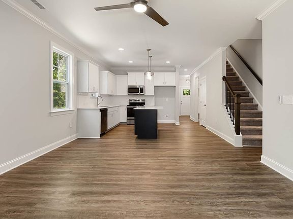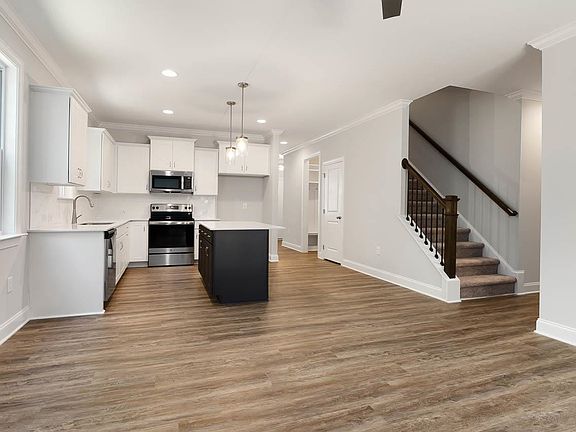 Custom Built by Ken Harvey Homes! Huge Rocking Chair Front Porch! Wide Plank Waterproof LVP Floors & Crown Thru Main Living! Kit: Custom 'White Satin' Painted Cabinets w/CoveCrown, 'Miami Vena' Quartz Ctops, 4x16 Herringbone Tile Backsplash, Double Trash Cab, Single Bowl SS Sink w/Pull Out Faucet, Crown Molding, Recessed Lights, Wlk in Pantry & SS Appls! Master: Ceiling Fan w/Remote, Crown Molding & WIC! MstrBath: 12x12 Tile Floor, Dual Vanity w/'Niagra' Quartz, 4x16 White Gloss Tile Srrnd Walk in Shower w/Niche! FamilyRm: Black Slate Srrnd Marquis Gas Log Fireplace w/Alexander Mantle & Ceiling Fan! French Door to Covered Porch!