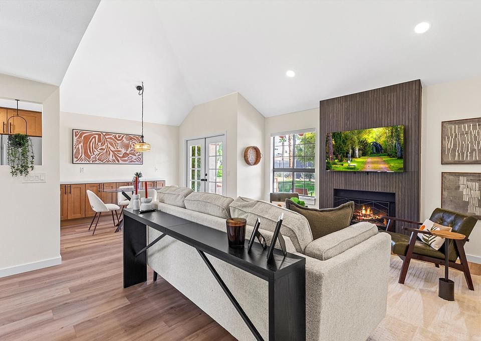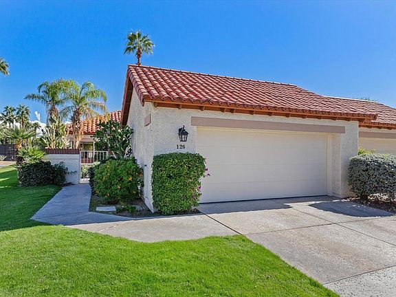 Welcome to 126 Avellino Circle-an exquisite desert retreat & another showcase renovations by DPS Renovations & SKS Design. Thoughtfully reimagined from top to bottom, this 2 bed, 2 bath residence blends refined luxury with modern comfort, offering a level of design typically reserved for premier custom homes. Rarely available, this Courtyard pied-a-terra is a study in understated sophistication, wrapped in a serene neutral palette & finished with curated, architectural-quality details. Offered fully furnished as shown for an effortless, turnkey experience. The chef's kitchen is both beautiful & functional, featuring bespoke cabinetry, quartz surfaces with clean, contemporary lines, imported tile accents, stainless steel appliances, & a natural-gas oven. Every element has been selected to elevate a space equally suited for casual mornings or inspired culinary adventures! Both bathrooms have been transformed into boutique hotel like sanctuaries, each showcasing custom vanities, matte-black fixtures, impeccable tiled walk-in showers, upgraded glass enclosures, lighted/heated vanity mirrors & designer wallpaper. Additional upgrades include a new HVAC system & state-of-the-art tankless water heater. The attached two car garage offers generous storage.Nestled within the gated Desert Falls Country Club, this section is an intimate, highly sought-after enclave known for its tranquil water features, meandering paths, & exceptionally active tennis & pickle ball community. Residents also enjoy access to the club's semi-private, SCPGA-rated 18-hole championship golf course--one of the region's premier ''play as you go or dine '' experiences. Perfectly situated in the heart of Palm Desert, the home is just minutes from El Paseo-renowned for its luxury boutiques, galleries, & fine dining-and moments from essential shops, services, and the best of the Coachella Valley's recreation.A rare opportunity to acquire a fully realized, design-forward residence in one of Palm Desert's desirable gated settings.Call now for your private tour!