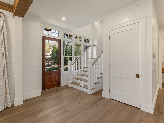 Modern farmhouse luxury is defined by this beautifully crafted 4 bedroom, 4.5 bath, Mountaintop Golf & Lake Club home. Tucked into a wooded setting with the gentle sound of Hurricane Creek nearby, the location is ideal: steps from the Athletic Club, yet privately situated so the home feels calm, inviting, and wonderfully retreat-like. Exterior details include classic, horizontal cedar siding, hand-laid stone, exposed rafter tails and tapered columns with a cedar shake roof that enhance its Craftsman character. The covered breezeway and expansive porches are constructed with sturdy timber posts and railings, offering seamless indoor-outdoor flow and convenient access to the spacious mudroom. Inside, the main level features an open layout centered around a standout kitchen with Wolf and SubZero appliances, custom cabinetry, Caesar Stone countertops, and a large center island. Just off the kitchen is the dining area, leading you to the living room. The living room’s stone fireplace (with gas logs) adds instant atmosphere, and large sliding glass doors open to the back deck for easy indoor/outdoor living. Nestled behind the fireplace is a gorgeous bar area with an exposed stone accent wall, prep sink, beverage fridge, SubZero ice maker, and cabinet storage space for entertaining. The main-level owner’s suite includes a spacious spa-style bath with vaulted ceilings and transom windows that let in copious amounts of light. The wet room is wrapped in marble tile where the shower and the large soaking tub are enclosed for functionality. Let’s not forget the primary closet with custom closets which are often hard to find in a second home. Upstairs, guests enjoy 3 private bedrooms, each with private bathrooms. These bedrooms are spacious and will accommodate a king-size bed with ease. The landing is surprisingly useful, too, with a built-in, two-seat office area and small breakfast bar with a beverage fridge and microwave. This home’s outdoor living areas truly shine. The side porch is grounded by a wood-burning stone fireplace, creating an inviting spot for year-round events. On the terraced side yard, the custom-built stone gas fire pit offers another place to settle in under the stars. At twilight, thoughtful exterior landscape lighting highlights the home’s architecture and stonework. For those who want an active, amenity-rich lifestyle with golf-cart access to all of Mountaintop’s offerings, this property delivers. Club membership is by invitation only.