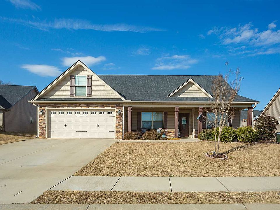 Fall in love with this 4 bedroom, 2 bath home that has been well loved and immaculately maintained. The great room has a corner fireplace with gas logs, crown molding, and hardwood floors that flow through the kitchen and dining area. The kitchen has stainless steel appliances, granite countertops, and a walk in pantry. The eat in dining area has wainscoting and a faux brick accent wall. Two bedrooms and a full bath are located off of the dining area. One bedroom is located off of the great room , and is currently being used as an office. The master suite is a perfect retreat. It is spacious, has a trey ceiling, and a large walk-in closet. The master bath has ceramic tile flooring, dual vanities, granite countertops, a whirlpool tub, and separate shower. This home continues to impress when you enter the back yard. There is a large screened porch that overlooks a fenced yard with patio for grilling, a built in fire pit, and goldfish pond. It is the perfect place to relax and unwind. The owner has also recently purchased solar panels, to make power bills nearly non-existent. This is one you will not want to get away! Located in a gated neighborhood, it offers a community pool, playground, and a pond. There is also a club house that can be rented for special occasions. Call today to schedule your personal viewing!