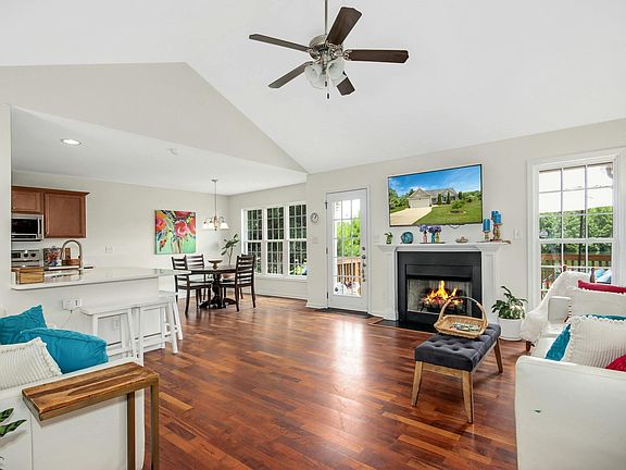 Multiple offers received.  Asking for all offers by 3:00 Monday, June 10th.      Welcome to your own piece of paradise! This stunning waterfront pond lot boasts extensive landscaping and stunning views that will take you breath away creating a serene and picturesque setting for this beautiful ranch-style home. Step inside the 1413 square foot, 3 bedroom, 2 bath home and be greeted by a vaulted ceiling in the family room with gas logs, creating a cozy and inviting atmosphere. The open concept floor plan allows for seamless flow throughout the home with no carpet in sight. The kitchen is a chef's dream with quartz countertops, stainless steel appliances, a pantry, and an eat- at bar. The sunny dining area is the perfect spot to enjoy your morning coffee and family meals while taking in the gorgeous view. The primary suite is a true retreat with a sitting area, walk-in closet, and a bathroom featuring a walk-in tile shower that is handicap accessible, as well as a dual vanity. Step outside onto the deck and enjoy the fenced yard, perfect for outdoor entertaining or just relaxing in the sun. But the real gem of this home is the backyard, where you can walk out and fish right from your own property.  For those who love fishing, just walk out to the backyard and cast a line in the pond....truly a rare find.