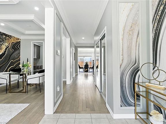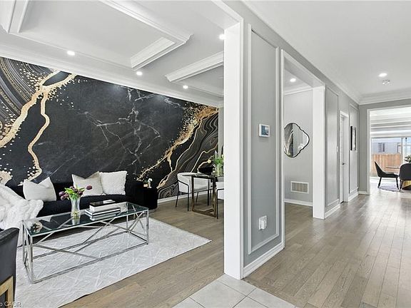 Welcome to your dream family home, where style meets functionality across more than 2,880 sq. ft. of impeccably designed living space. This beautifully upgraded home features 4 generously sized bedrooms, including a luxurious primary suite with dual walk-in closets, custom built-ins, and a spa-inspired en-suite. A convenient Jack & Jill bathroom connects two additional bedrooms, including walk-in closets while the fourth bedroom offers its own private ensuite—perfect for guests, in-laws, or a growing family. The main floor is equally impressive, showcasing engineered hardwood floors, elegant coffered ceilings, and a custom feature wall with a fireplace in the family room. Enjoy effortless entertaining in the formal living and dining rooms, or gather in the spacious eat-in kitchen complete with granite countertops, Built-in appliances, a butler’s pantry, and oversized patio doors that open to a large, fully fenced backyard. Additional features include a double-car garage, thoughtful upgrades throughout, and a layout designed for modern living. Situated in a highly sought-after neighborhood close to top-rated schools, scenic parks, and nature trails, this move-in-ready home offers the perfect balance of comfort, luxury, and location. Don't miss your chance to fall in love—this one is a must-see!