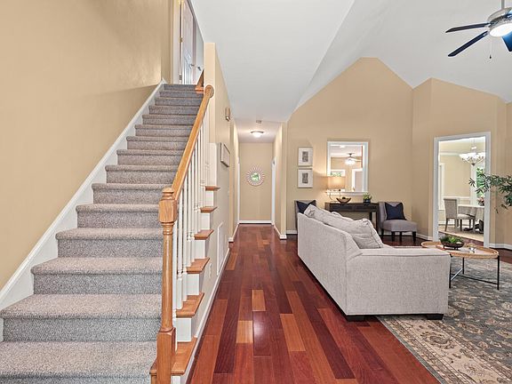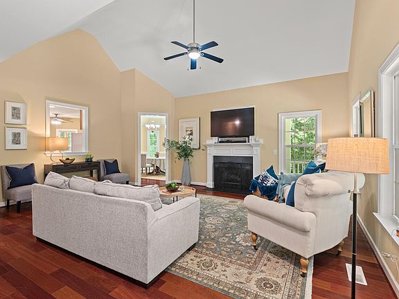 Located on approximately 4.74 private acres this 2 story home's large lot is perfect for horses, pets, and/or people who love privacy! Brazilian cherry floors greet you at the entry with a spacious living area with fireplace, vaulted ceiling, and plenty of room for family or entertaining. Large open dining room with tray ceiling is perfect for dinner parties or casual get-togethers. Spacious kitchen with recessed lighting, eating area and breakfast bar, a pass-through to living room, and adjacent to large screened porch with hot tub! The spacious 1st fl. Master bedroom has tray ceiling, fan, and ensuite bathroom with large tile shower, separate tub. 2 more bedrooms on main! Laundry room features a large sink and cabinets. Upstairs is another bedroom and family room and office plus large unfinished attic! Outdoors stone patio with stacked stone curved wall. 2 outdoor storage buildings. Lots of trees and shade! Convenient location just 15 minutes to Duke! 2 car garage!