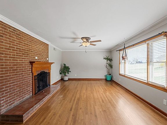 This custom-built home offers privacy while being conveniently located. Features include, concrete driveway, custom brickwork on the double carport, built-in planters, and a covered front porch. Inside, enjoy a large foyer and hardwood floors leading to a bright living room with a picture window and wood-burning fireplace. The updated kitchen boasts granite countertops, an island, stainless steel appliances, a gas log fireplace, and a large eat-in area. The formal dining room could serve as another bedroom (no closet). The primary bedroom features a cedar closet & attached bath, plus a second large bedroom & full bath. The waterproofed basement is framed with a roughed-in bath, offering potential to double your living space. Also, it offers a partially finished kitchen in the basement. This home has a brand-new heat pump.