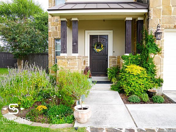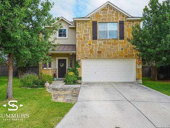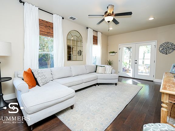 Do you want a private backyard with Hill Country views in town? This well maintained single owner home backs to a large ranch. As you enter the home natural light from large windows fill the inviting living room. French doors lead to the oversized private covered patio making entertaining a breeze. The kitchen has custom touches throughout and an island with granite counters, farmhouse sink, stainless appliances, and plenty of storage. This home boasts a spacious light filled primary bedroom with a marble double vanity, oversized shower and walk in closet. Additionally you will find a great flex room, perfect area for work or play. Outside sit under a large wood pergola that's shaded with climbing roses while you enjoy the pastoral hill country views. A darling custom built playhouse with designer interior is ready to be loved, and matches the storage building. This home is a short walk to the elementary school, high school and North Neighborhood Park.