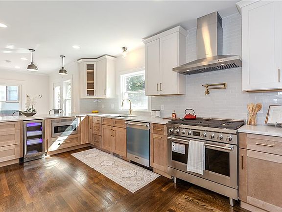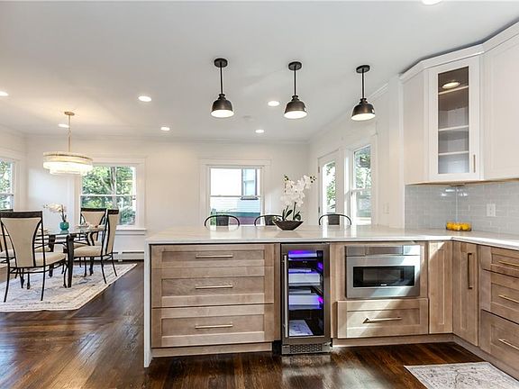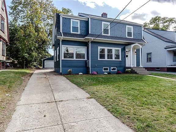 Fully renovated and full of character, this Edgewood home blends thoughtful updates with timeless appeal on one of Cranston’s most desirable streets. Recent improvements include a new one-layer roof on both the house and garage, new 200-amp electrical service, all new windows, and a complete interior renovation. The kitchen is a true highlight, featuring custom cabinetry, quartz countertops with built-in dining peninsula, a beverage fridge, and high-end stainless steel appliances. It opens to bright living and dining areas, including a cozy living room with a wood-burning fireplace. Upstairs, a new primary suite addition offers a private bath with a walk-in shower, tile finishes, and a spacious closet. Two additional bedrooms share another updated full bath, and a half bath serves the main level. Set on an 8,200-square-foot lot with a spacious yard, fresh landscaping, and a two-car garage with new overhead doors, this home offers an ideal Edgewood location near Pawtuxet Village, marinas, local shops, Providence Station, major highways, and T.F. Green Airport.