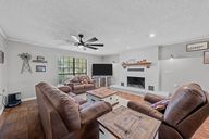 - Fireplace features: Living Room, Raised Hearth, Stone, Wood Burning