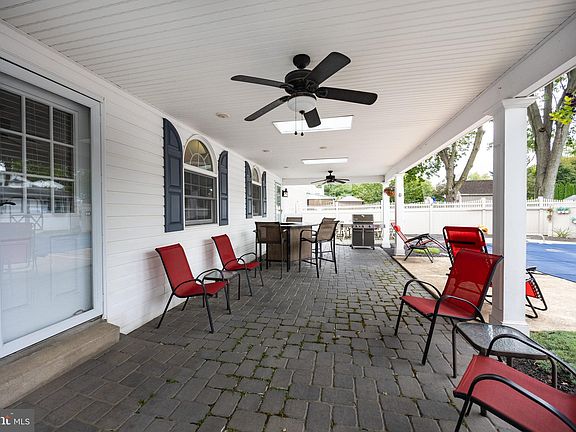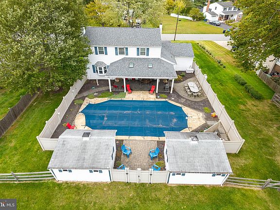 Welcome to Marchwood! Located in the desirable Downingtown East School District and STEM Academy, this beautifully maintained 5-bedroom, 2.5-bath Colonial with a 2-car garage offers a spacious floor plan and exceptional outdoor living spaces. Set on a level, fenced lot, this home features an in-ground pool and a covered rear patio with skylights—a perfect spot to relax, dine outdoors, or entertain. The pool area is fully fenced, with a gate leading to a second fenced area for added versatility. The inviting covered front porch adds to the home’s welcoming charm. Inside, the main level offers a spacious living room, large dining room with hardwood floors, and a family room with a stone gas fireplace, bay window and direct access to the rear porch. Elegant moldings throughout add character to the home. The updated kitchen includes quartz countertops, a subway tile backsplash, and stainless-steel appliances. An updated powder room, laundry/mudroom with utility tub and rear porch access, and entry to the oversized 2-car garage complete the main level. Upstairs, you’ll find 5 bedrooms with updated hardwood floors, 2 updated bathrooms, and ceiling fans in 4 bedrooms. The basement is unfinished and provides additional storage space. Amenities and updates include a whole-house generator (95% coverage), main roof replaced in 2024, front door with leaded glass and sidelights, replacement windows, hot water heater, chimney caps, gutter guards, garage doors, driveway, newer pool cover, and two sheds with electric. Enjoy a fantastic location close to schools, shopping, parks, and major routes. This wonderful home offers space, updates, and a great neighborhood—a must-see in Marchwood!