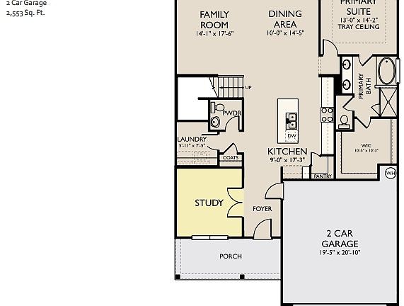 Lot 155. This open-concept Macon floorplan by Ashton Woods has the primary suite on the main level as well as a spacious office with French doors and great natural light. Beyond the gourmet kitchen, the dining area and family room flow together. Extend your dining outdoors onto the covered back patio. The oak stairs lead to a loft upstairs, perfect for game night. You'll also find 3 large bedrooms, each with a walk-in closet, and a hall bathroom with dual sinks. This home features designer-curated finishes from the Roosevelt Collection including glass pendant lights, stunning tile backsplash, Stamina Gray quartz counters, warm stained cabinets and a single-bowl stainless sink. See sales agent for special incentives with use of preferred lender.