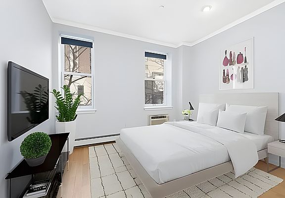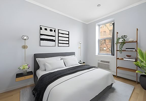 This beautiful apartment in Murray Hill / Kips Bay is very bright and already configured as a 2-Bedroom. The apartment features tree-lined views, white oak flooring, double-sink kitchen, recessed lighting, high ceilings and plenty of closets. Both bedrooms can fit a Queen sized bed and there is a built in AC and full-sized bath.
