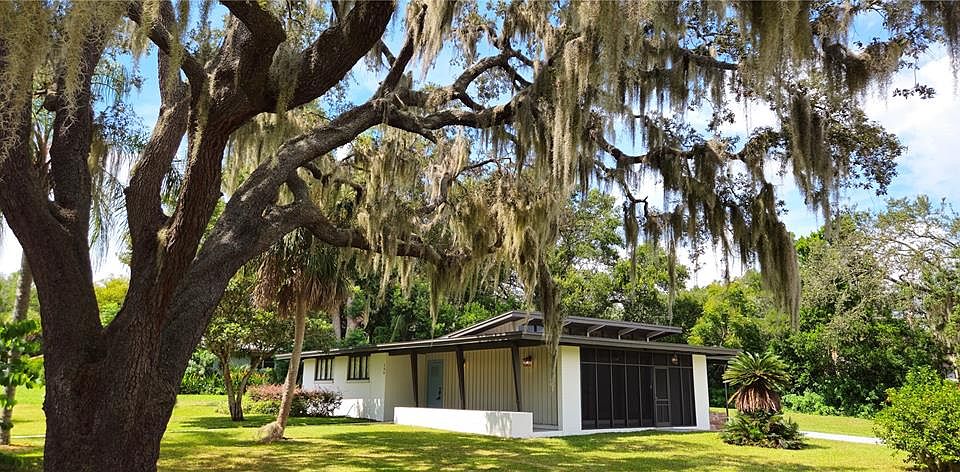 Bespoke, One of a Kind...whatever you want to call home, your friends and neighbors will love this one! A true 1953 Mid-Century Modern home featuring tons of natural light and materials. The main living area, with a wall of windows and heavy wood sliders, fully open to let the outside in. Wood beams, tongue n' groove ceiling and Clerestory windows will draw your eye upward. The adjacent kitchen has been updated to include maple cabinetry, stainless steel appliances and solid surface countertops. The primary and secondary bathrooms have been maintained in excellent condition to retain their original character. And a peaceful laundry room with lots of storage in the attached carport. Situated on a large corner lot and just 4 homes away from Lake Harris, where you will enjoy your evening strolls along the lakefront pathway. Town park and boat launch/pier is just a few blocks over. Howey in the Hills IS small town America with easy access to Florida's Turnpike, downtown Tavares (America's Seaplane City) or the Famous Yalaha Bakery. Mechanical ages are Roof 2019, AC 2018, HWH 2020. They don't build them like this anymore!