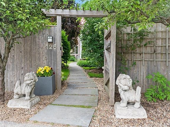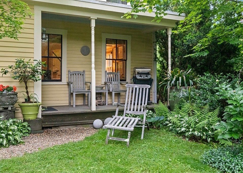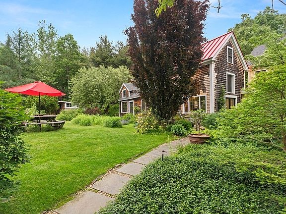 There is an element of surprise when you walk through the garden gate of this thoughtfully updated 3-story historic farmhouse on a private lot with no visible abutters. You are immersed in a new environment, populated with mature trees, flowering shrubs and groundcover beds, peach tree, raspberries, and blueberries. The house is nestled against a sloping hill of Juniper, with 6 distinct outdoor spaces, shaping the 1.1 acres into an unexpected and imaginative landscape. Loaded with charm, the wainscoting-clad kitchen opens to a sun-drenched dining room, living room with a center fireplace, half bath, and mud room with laundry. Second-floor bedrooms and large full bathroom include built-in cabinets and closet. The third floor offers a massive private primary suite with full bath and room for a sitting area or office space. The attached barn provides endless potential with its wood stove, full loft space, summer room with sleeping loft, and separate entry. Close to schools and downtown!