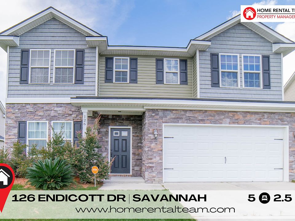Spacious 5 bedroom 2 1/2 bath 2-story home located in Bradley Pointe South. Amenity filled community located minutes from Hunter AAF and a short drive from Fort Stewart. This home includes a formal dining room, great room with a fireplace, eat in kitchen with granite counters and stainless steel appliances in the kitchen. Upstairs has an open loft space. Master suite has two walk in closets. Fenced in yard too! This home is zoned in the Southwest zone, for Chatham County Schools. These schools include Southwest Middle, Southwest Elementary, and Winsdor Forset High.