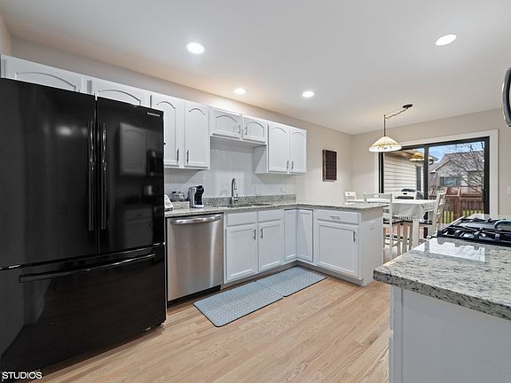 Recently renovated and meticulously maintained, this two-story townhouse offers modern comfort in a serene cul-de-sac setting, backing onto lush natural surroundings. The open floor plan features a vaulted ceiling dining room, spacious living room with fireplace, and a split staircase with modern railing. The kitchen boasts recent updates including a new backsplash, painted cabinets, and hardware. Freshly painted walls, trim, and doors throughout complement the contemporary feel. Upstairs, awaits the primary suite with a completely renovated bath and huge walk-in closet. The finished basement includes a family room with a wet bar and refrigerator, along with a full bath. Recent upgrades also include updated light fixtures, second-floor hardwood floors, and a partially renovated half-bath and basement bath. Key improvements from 2022 include a new water heater. Refrigerator, A/C and furnace 2018. Furniture is negotiable! This home offers a private oasis minutes from Rt.59, with easy access to Rt.20 and I-90. Don't miss this immaculate blend of style and tranquility!