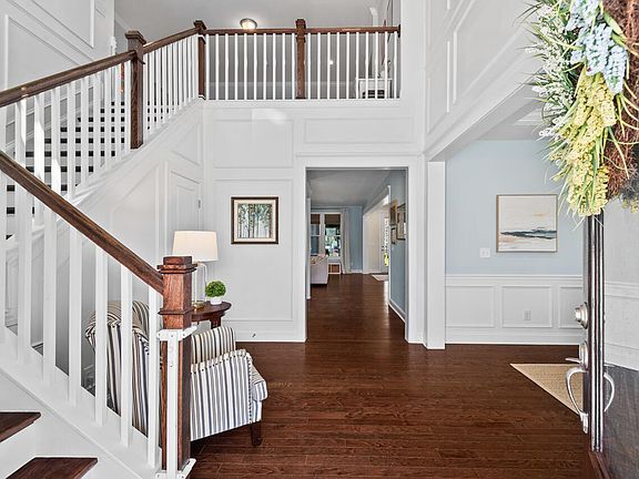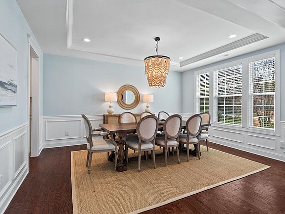 MUST BE SEEN TO BE BELIEVED! This extraordinary home has such incredible attention to detail and phenomenal design touches that you are certain to be delighted and impressed. It is truly like no other. From the custom built-ins throughout the entire home, to the beautiful custom millwork and trim, I am telling you again, it must be seen to be believed. Upon entering the sweeping two-story foyer, you'll immediately appreciate the impeccable craftsmanship and attention to detail that define this home. Custom millwork, elegant trim, and thoughtfully chosen finishes grace every room. The formal dining room, with natural light from expansive windows, flows seamlessly into a chef's dream of a kitchen. With an oversized island, pristine granite countertops, and a custom-built bar featuring soft-close cabinetry, this kitchen is both functional and beautiful, but I like to call it a masterpiece. The open-concept living and dining areas create a perfect flow, and draws you to the truly extraordinary outdoor living space. Step outside to discover a custom-built covered stone patio, complete with a wood-burning fireplace and TV — a true entertainer's dream. The fully fenced backyard overlooks protected land, providing unparalleled privacy and a peaceful retreat for relaxing or entertaining. On the main floor, a well-appointed guest suite with an en-suite bathroom ensures your visitors feel right at home. The mudroom, right off the garage features custom built-ins offering offers ample storage and serves as a tidy drop zone to keep everything in order. Upstairs, a spacious, multi-functional landing leads to an equally well-designed second level. The huge primary suite is a sanctuary, with custom built-ins, abundant natural light, and serene views of the surrounding woods. The primary bathroom is large and luxurious, featuring a double vanity, high-end hardware, and elegant finishes while the oversized walk-in primary closet is the perfect blend of space and organization. Upstairs you'll also find two generously-sized bedrooms connected by a Jack-and-Jill bathroom, as well as an additional bedroom with lovely views of the woods and plenty of natural light. A fourth full bathroom, large laundry room, and an office (or workout room, creative space or even 6th bedroom), complete the upper level. As if all of this weren't enough, this home is located in an incredible neighborhood with exceptional amenities, including a pool, clubhouse, playground, and more. Plus, it's just minutes from dining, shopping, entertainment, parks, and nature trails. Meticulously maintained and thoughtfully upgraded with a designer's eye for style and charm, 126 Filigree Way is a class unto itself and truly must be seen to be believed!