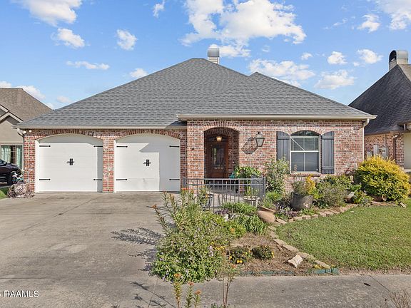 Welcome to 126 Gateway Dr.--a beautifully maintained, one-owner custom home located on a quiet, single-street subdivision in Lafayette! Enjoy the privacy of having no rear neighbors, with side wooden fencing for privacy and an aluminum rear fence designed to showcase the beautiful open views. This 3-bedroom, 2-bath home features an inviting open, split floor plan with over 9-foot ceilings, crown molding, and custom touches throughout. The spacious living areas connect seamlessly to a kitchen equipped with granite countertops, stainless steel appliances, custom real-wood cabinetry, and a natural gas cooktop--perfect for home cooks and entertainers alike. The primary suite provides a relaxing retreat with large walk-in closets, a separate shower, a soaking tub, and dual vanities. Step outdoors to a backyard designed for enjoyment and ease, featuring an extended rear patio, pergola, and fire pit--the ideal setting for relaxing evenings or weekend gatherings. This home was built with low-maintenance living in mind: Brick exterior Insulated windows Seamless aluminum gutters Irrigation system Full-home natural gas generator Two-car garage Roof only 6 years old Located just five minutes from the Acadiana Mall, this property offers convenience without the cost--no city taxes, only parish taxes. It is also eligible for 100% financing, making it an excellent opportunity for buyers. Custom built, move-in ready, and thoughtfully maintained--126 Gateway Dr. offers privacy, comfort, and quality in a highly desirable location.